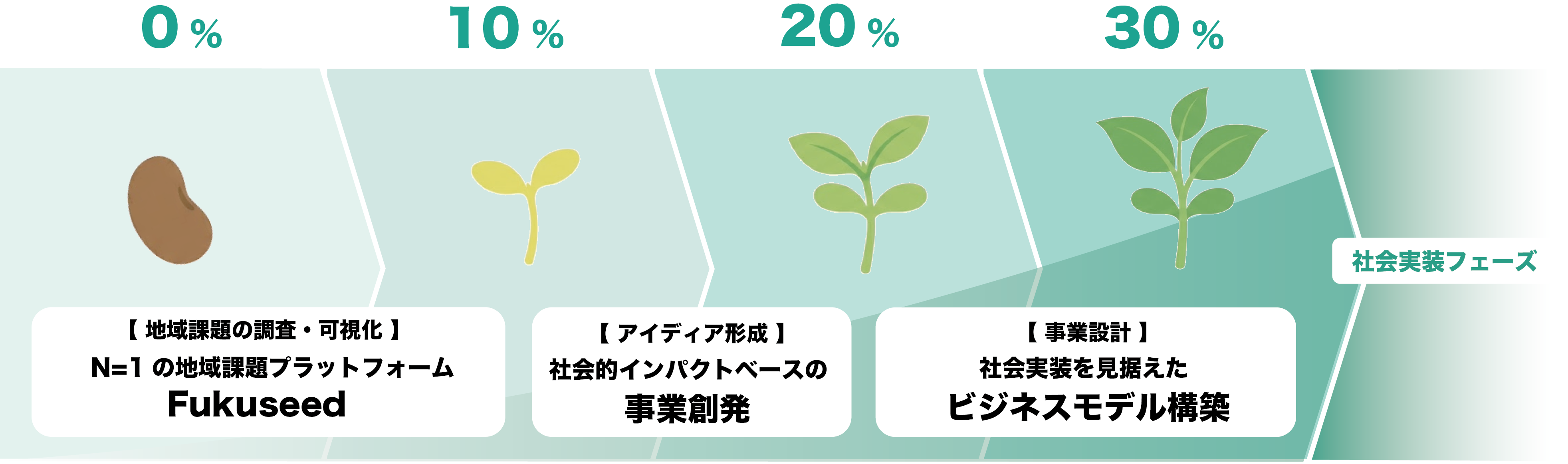 実証段階から事業化・社会実装への展開を見据え、事業を実施するための組織開発と資金調達計画をつくります。事業について、実際の地域の現場での検証計画を作成し、プロトタイプの検証を行います。